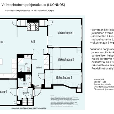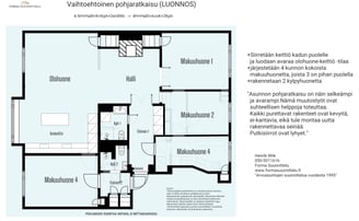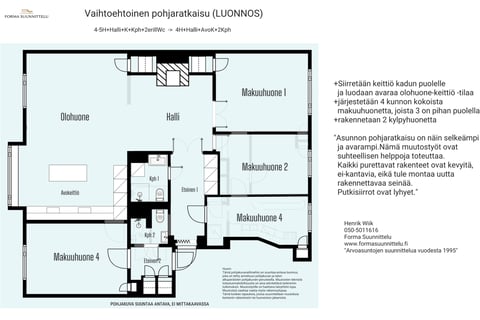 vaatimustasoa vastaaviksi. Pohjapiirustuksesta näkee mitä muutoksia asuntoon voi tehdä.