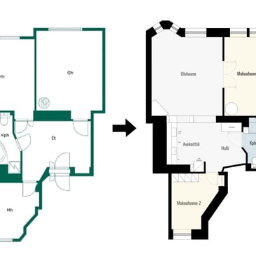 Suunnittelemme asunnolle vaihtoehtoisen pohjaratkaisun, joka näyttää asunnon todelliset mahdollisuudet.